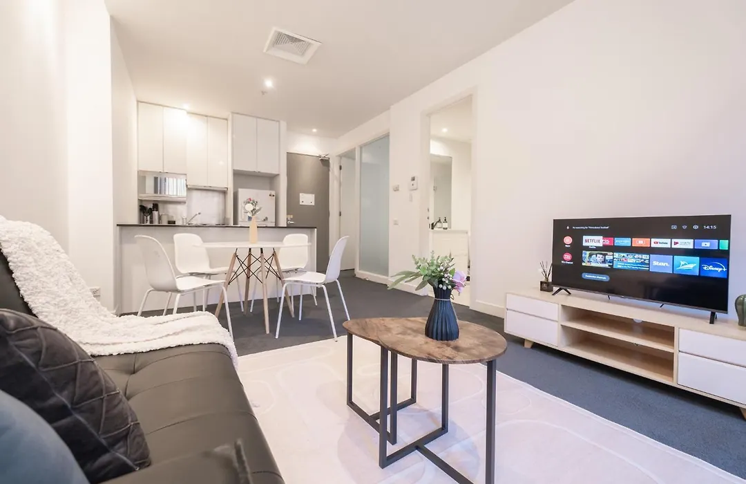 El Prime Located 2Br1Ba Apt In Mel With Study dispone de una cocina con un lavavajillas, nevera y un horno. La estación de autobuses Southern Cross Coach Terminal está cerca del Prime Located 2Br1Ba Apt In Mel With Study, a 800 metros.